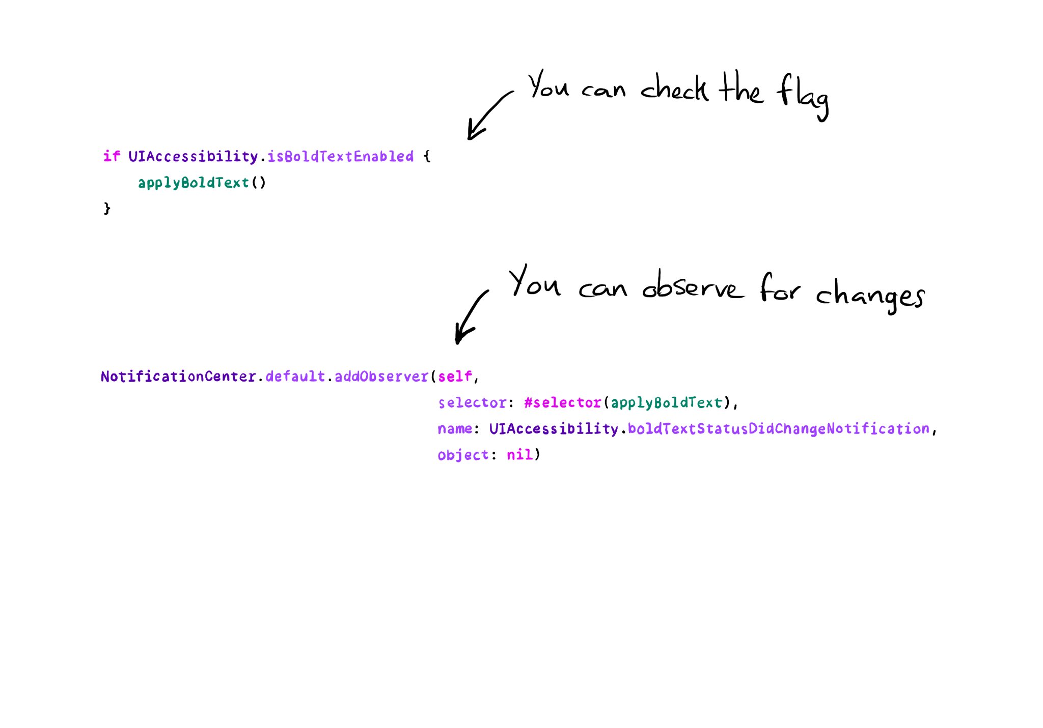 All the accessibility capabilities you can check for, have counterpart notification names you can observe in case the user changes its preferences while using your app. https://x.com/dadederk/status/1577435144129892352