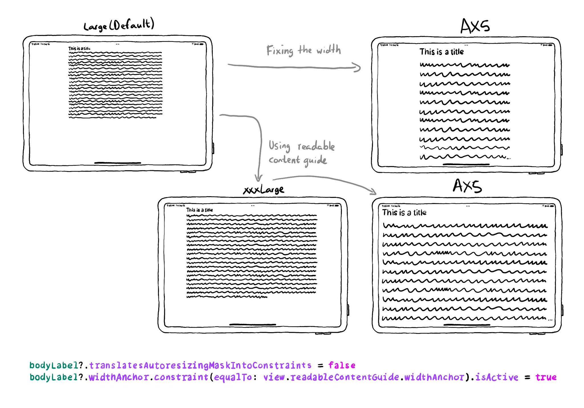 Ever wondered what the ideal width is for labels so the text is readable? Well, it depends. But readableContentGuide has you covered. You can configure the optimal width independently of Dynamic Type size or Size Classes. https://developer.apple.com/documentation/uikit/uiview/readablecontentguide