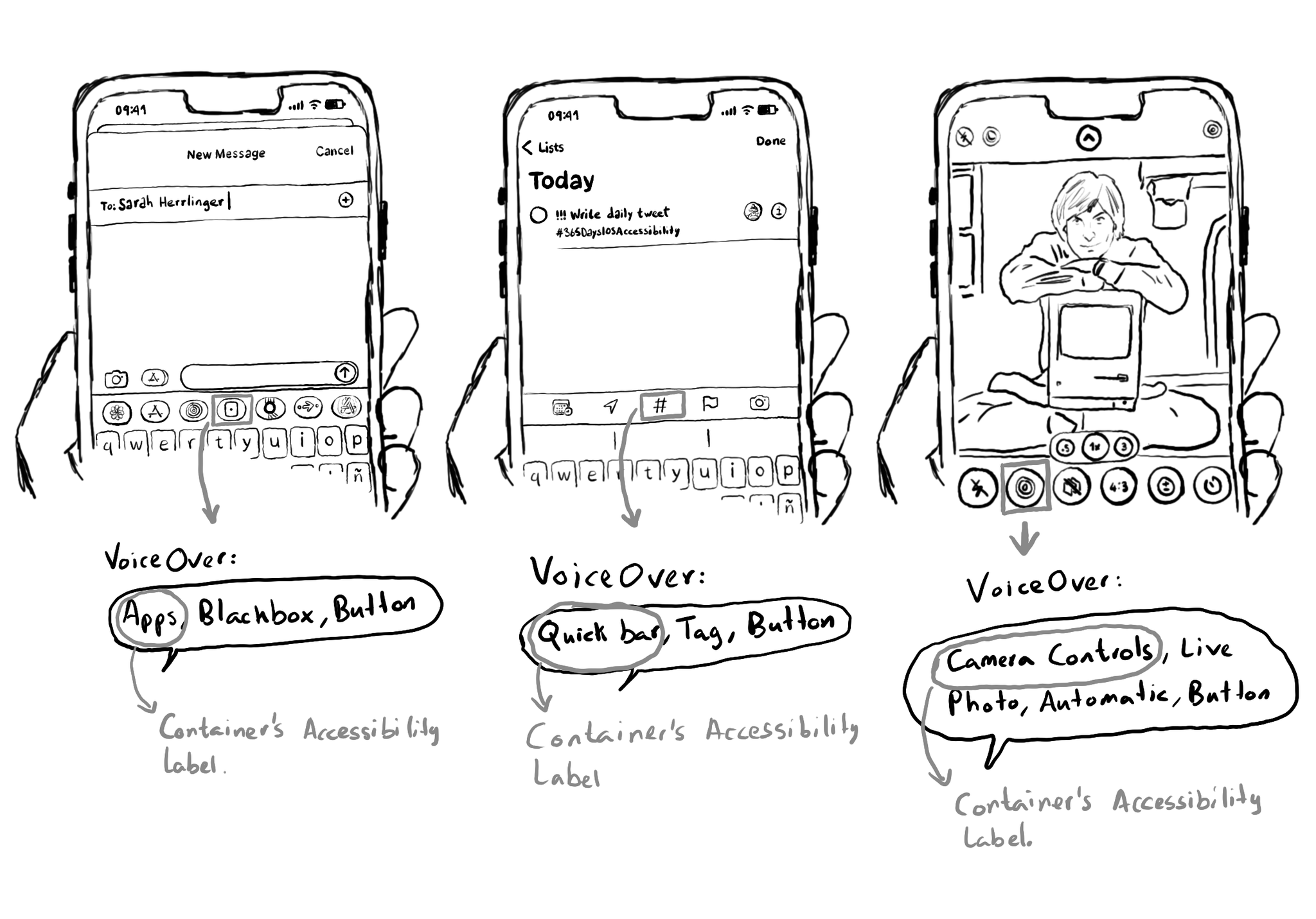 Here's a few examples where Apple seems to use the semanticGroup accessibilityContainerType, other than for the tab bar and toolbar, to serve for inspiration on when it might be useful in your own apps. Reminder that this configuration causes for VoiceOver to announce the accessibility label of the container view, before what it would normally announce for an element, only when the focus moves from outside to inside the container.