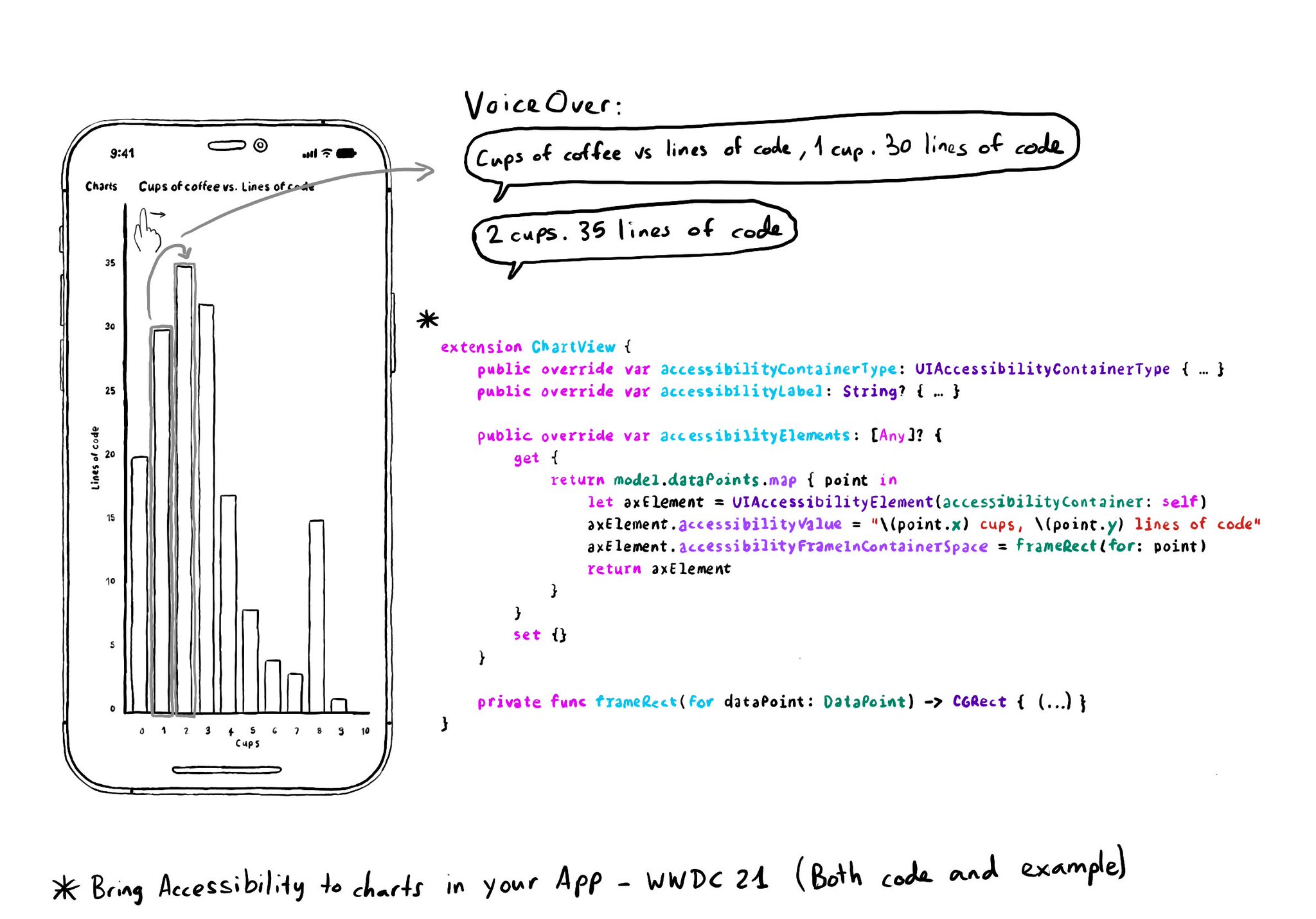 When making charts accessible, sometimes you may have just too many data points for the user to have to go one by one through all of them. In those cases, you can create accessibility elements that represent meaningful chunks of the graph.