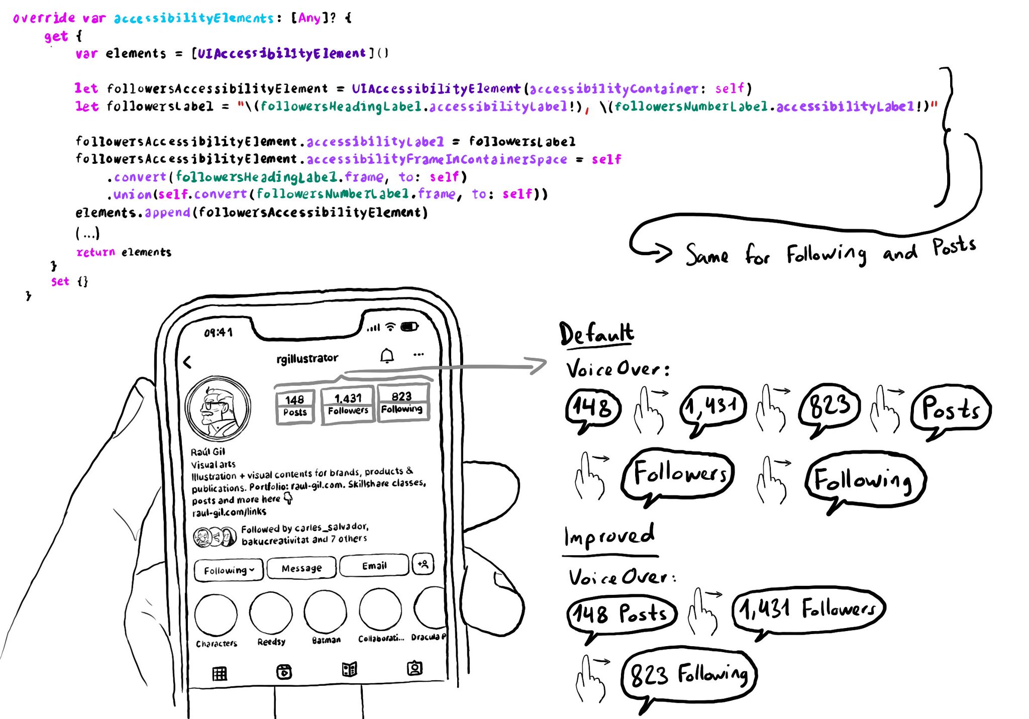 Creating UIAccessibilityElements, combined with a semanticGroup accessibilityContainerType, can also help you make components as complex as charts accessible. Example from "Bring Accessibility to Charts" WWDC21: https://developer.apple.com/videos/play/wwdc2021/10122/
