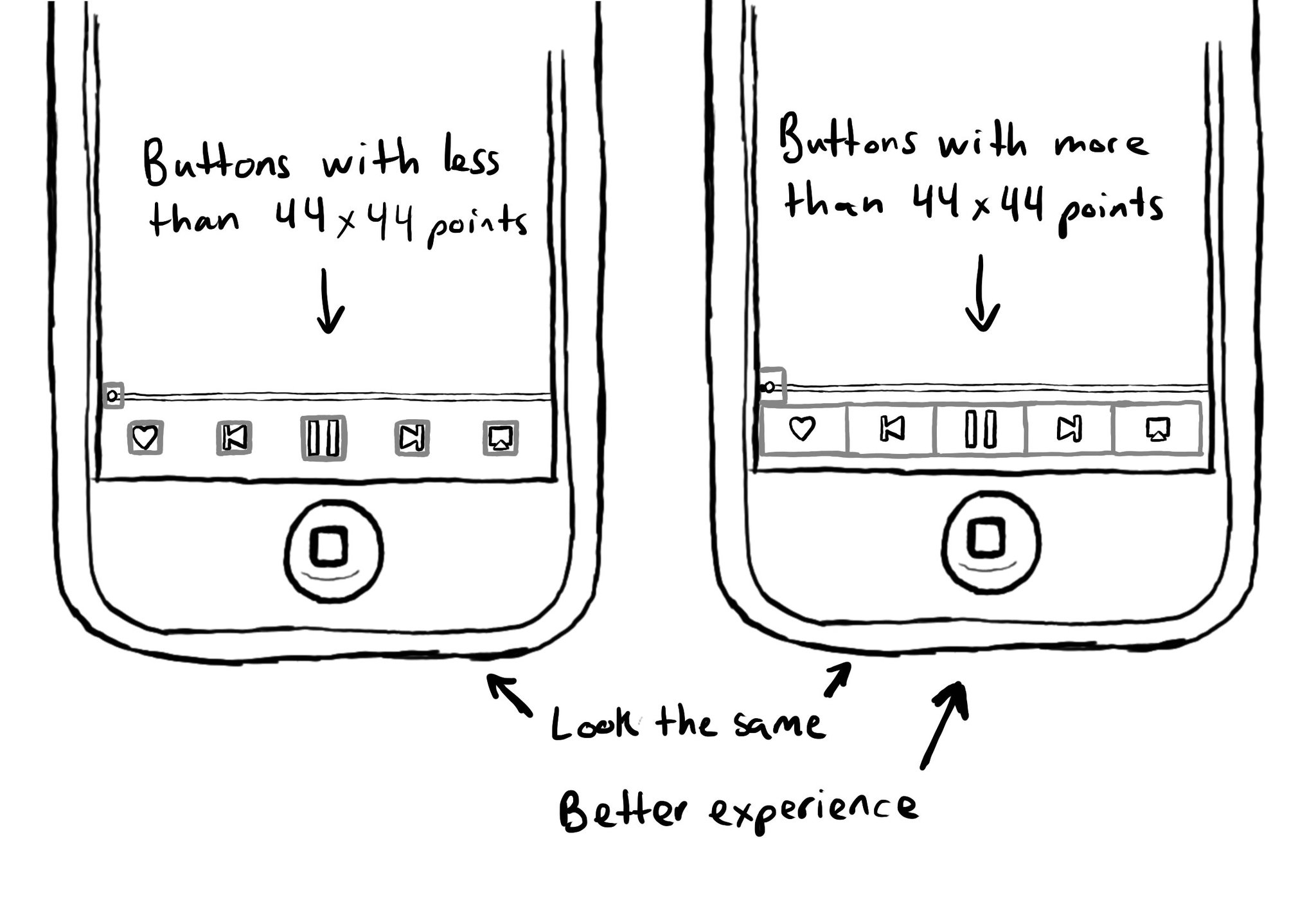 Apple recommends in their guidelines a minimum tappable area size of 44x44 points for all controls. A lot of times this can be corrected in an app without changing how it looks, but making it objectively easier to interact with for everyone.