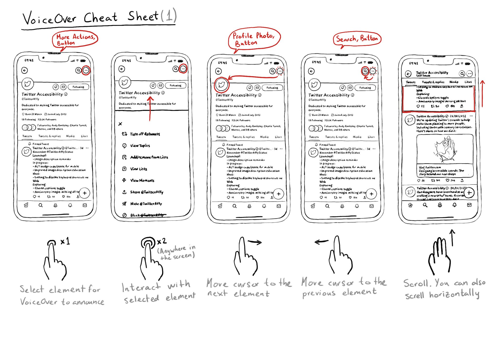 Let's quickly remember a few of VoiceOver's most important gestures that will let you do some of the most basic actions including selection, interacting, navigating, and scrolling. And Apple has a great video: https://m.youtube.com/watch?v=qDm7GiKra28&feature=youtu.be