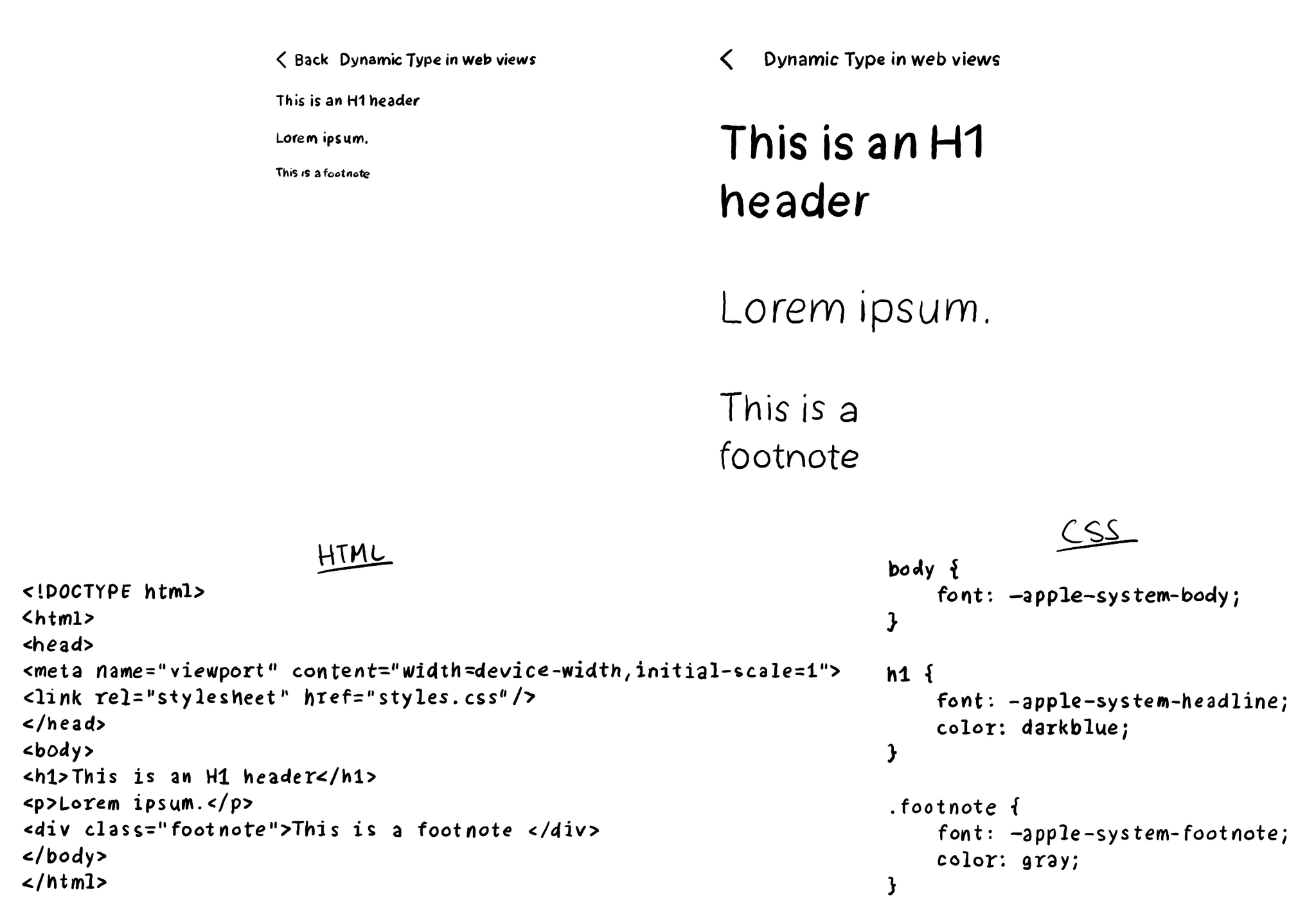 If you have any web views in your app (Terms and Conditions and Privacy Policy, I'm looking at you), you can also support Dynamic Type for them. You can set an Apple system font with the same styles available for native development in your CSS.