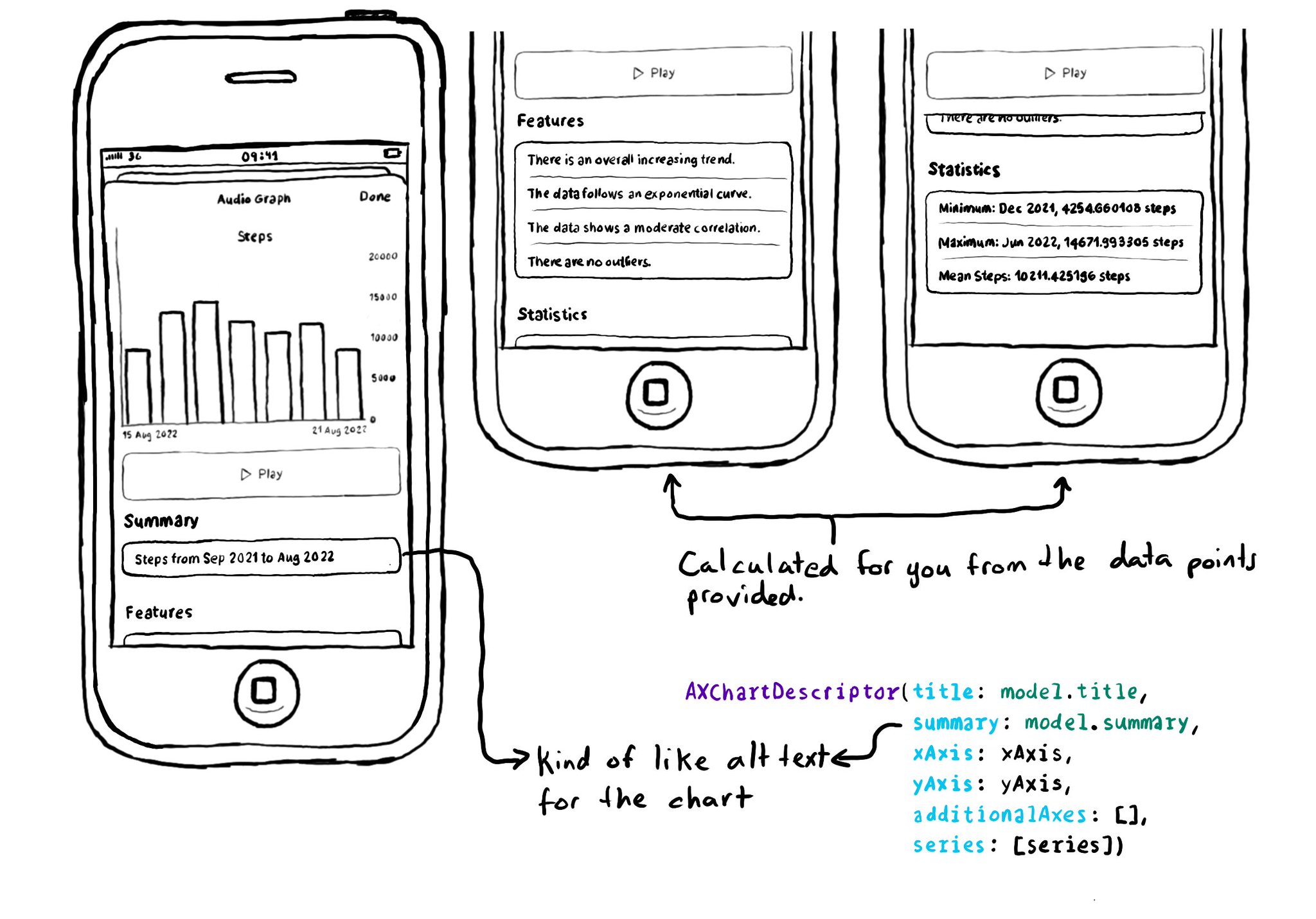 The Audio Graphs API has some very nice features aside from being able to consume the graph as audio. You can give it a summary and it will also provide your users with trends, correlations, outliers... and statistics like min and max or the mean.