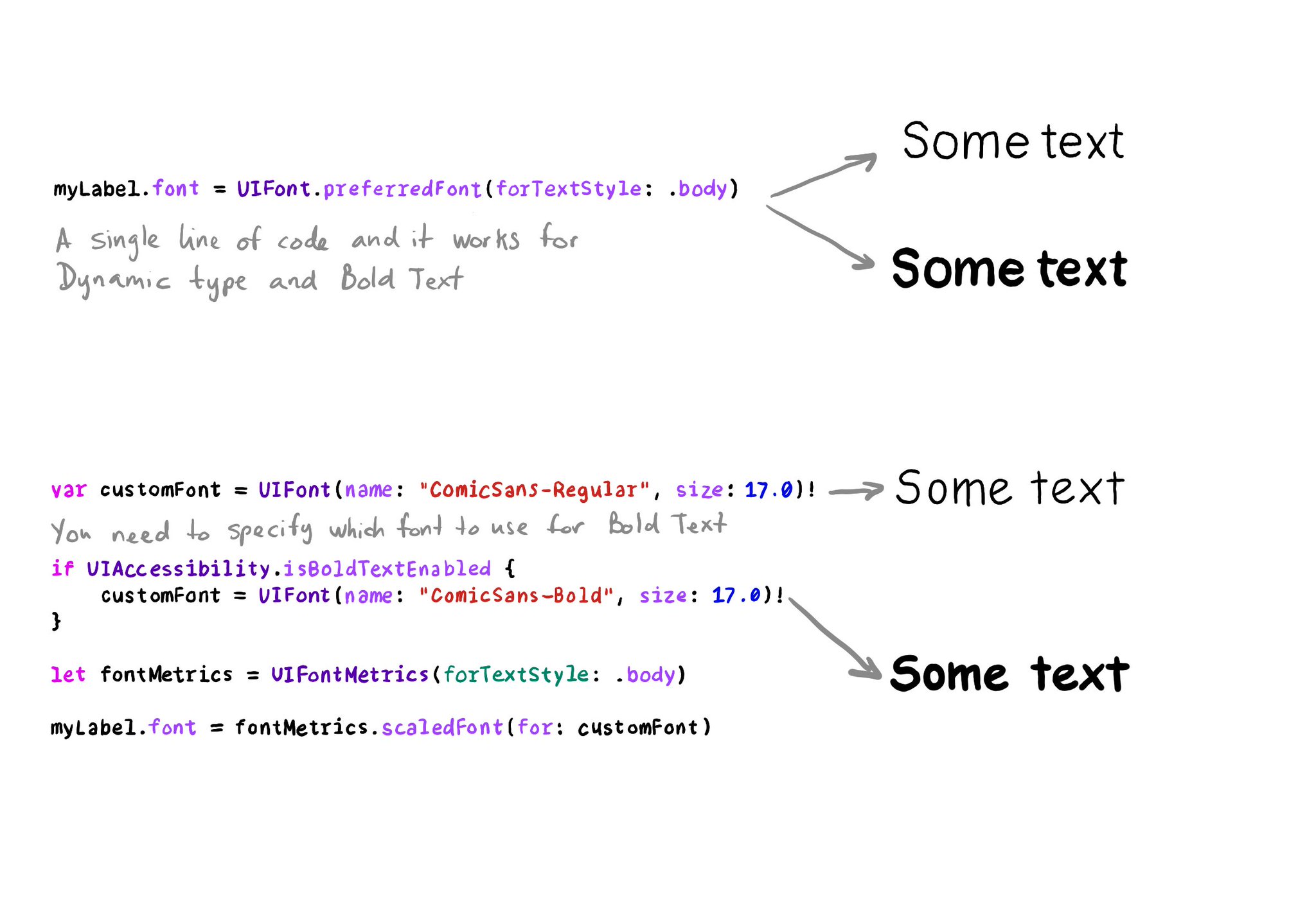 Your iconography should support Bold Text too. One way of doing it is by creating custom symbols (and specifying weights for it) to work with them as you would with regular SF Symbols. How Creating custom symbols: https://developer.apple.com/videos/play/wwdc2021/10250/