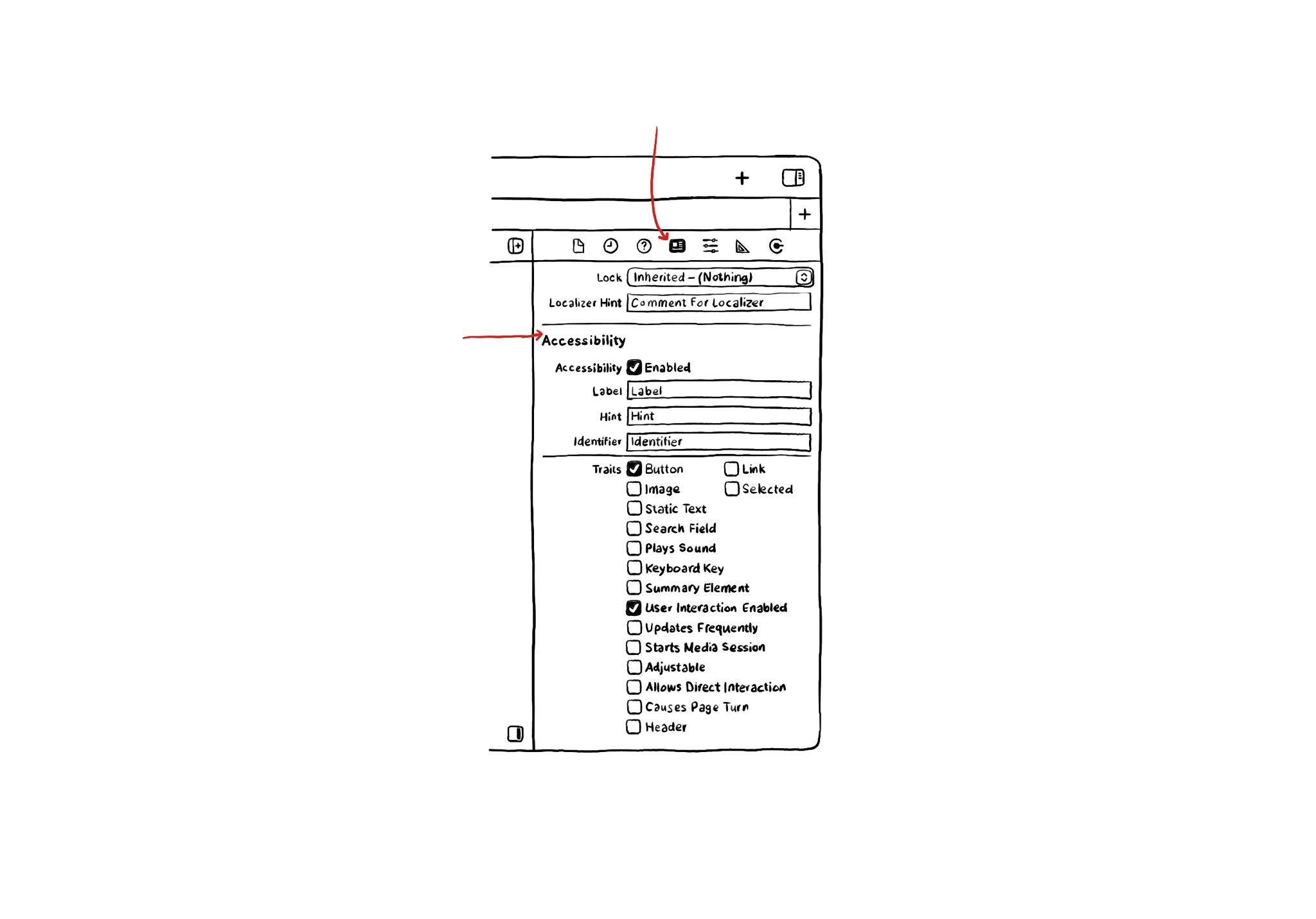 If you use Interface Builder to build your app’s layout, there are some basic accessibility attributes that can be configured from there. They can be found in the Identity Inspector in the right-side panel in Xcode.