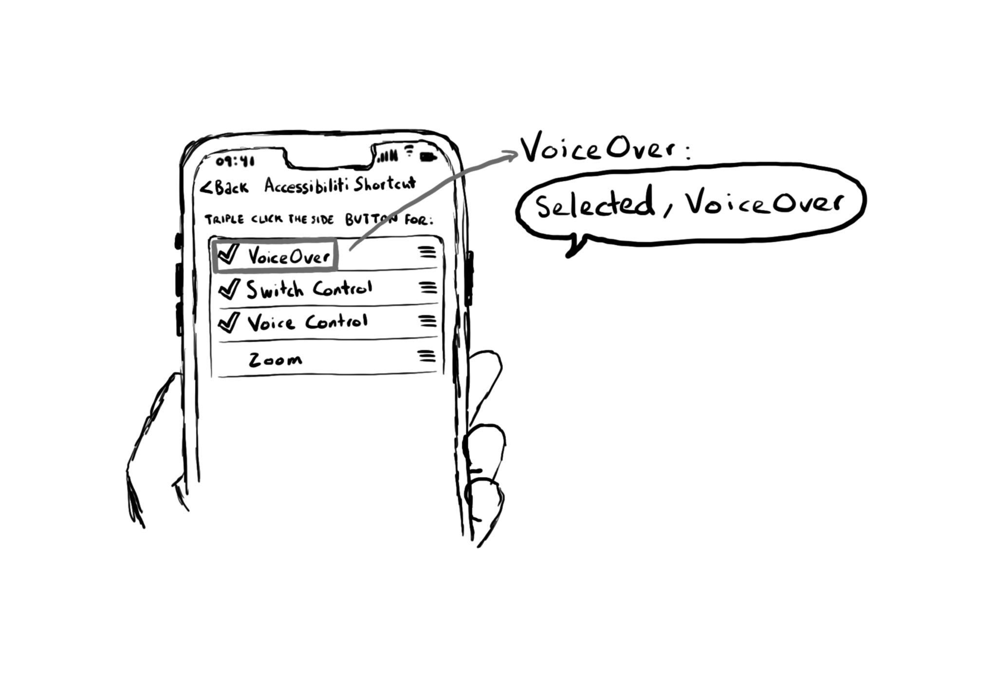 The .selected accessibility trait indicates when an element has been selected. You’ll notice that VoiceOver announces “selected” before the accessibility label. You can find that in the system for the selected tab in the tab bar, for example.