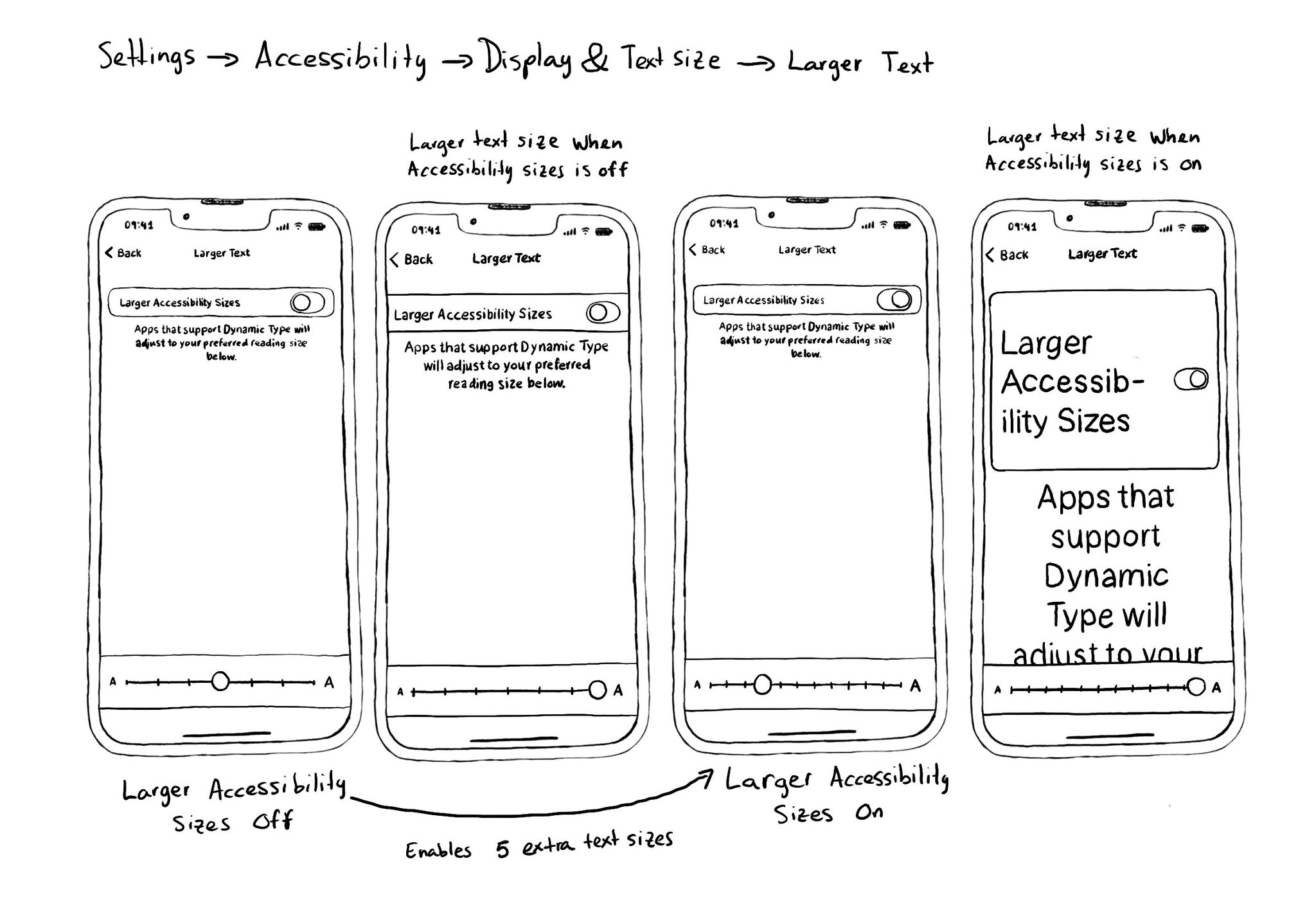 Reminder to enable Larger Accessibility Sizes, so you can pick from one of the five extra accessibility sizes when configuring text sizes. You can do it from Settings, Accessibility, Display & Text Size, and Larger Text.
