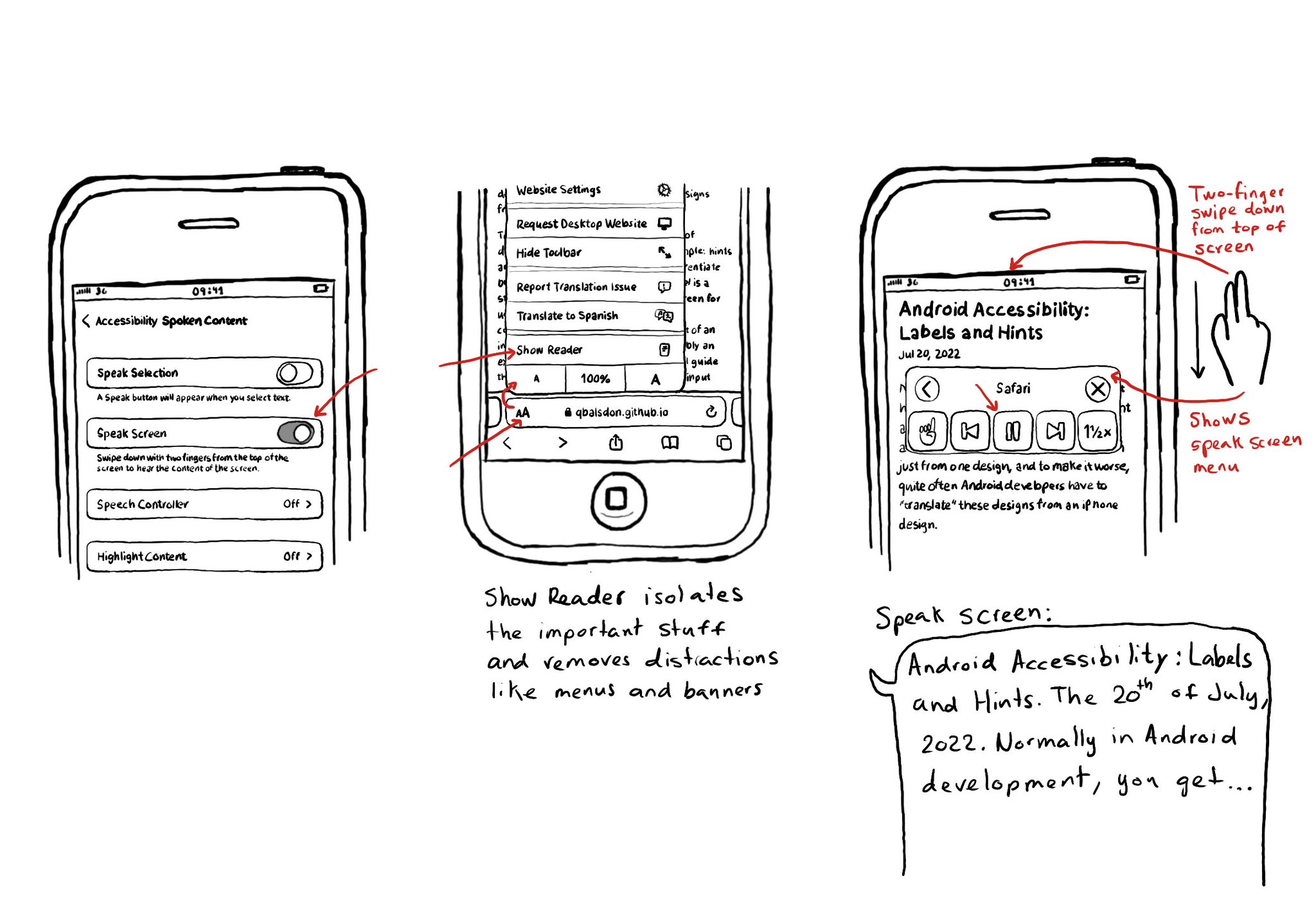 Today I want to share something I use a lot. You can convert any article into a “podcast” by enabling Speak Screen in Accessibility Settings, switching to Safari’s Reader Mode and swiping down with two fingers from the top of the screen. I think it is a good example of how if we all knew more about how to use the assistive tech available in iOS, we would find ourselves using more of them, more often, exemplifying quite well that accessibility benefits everyone.