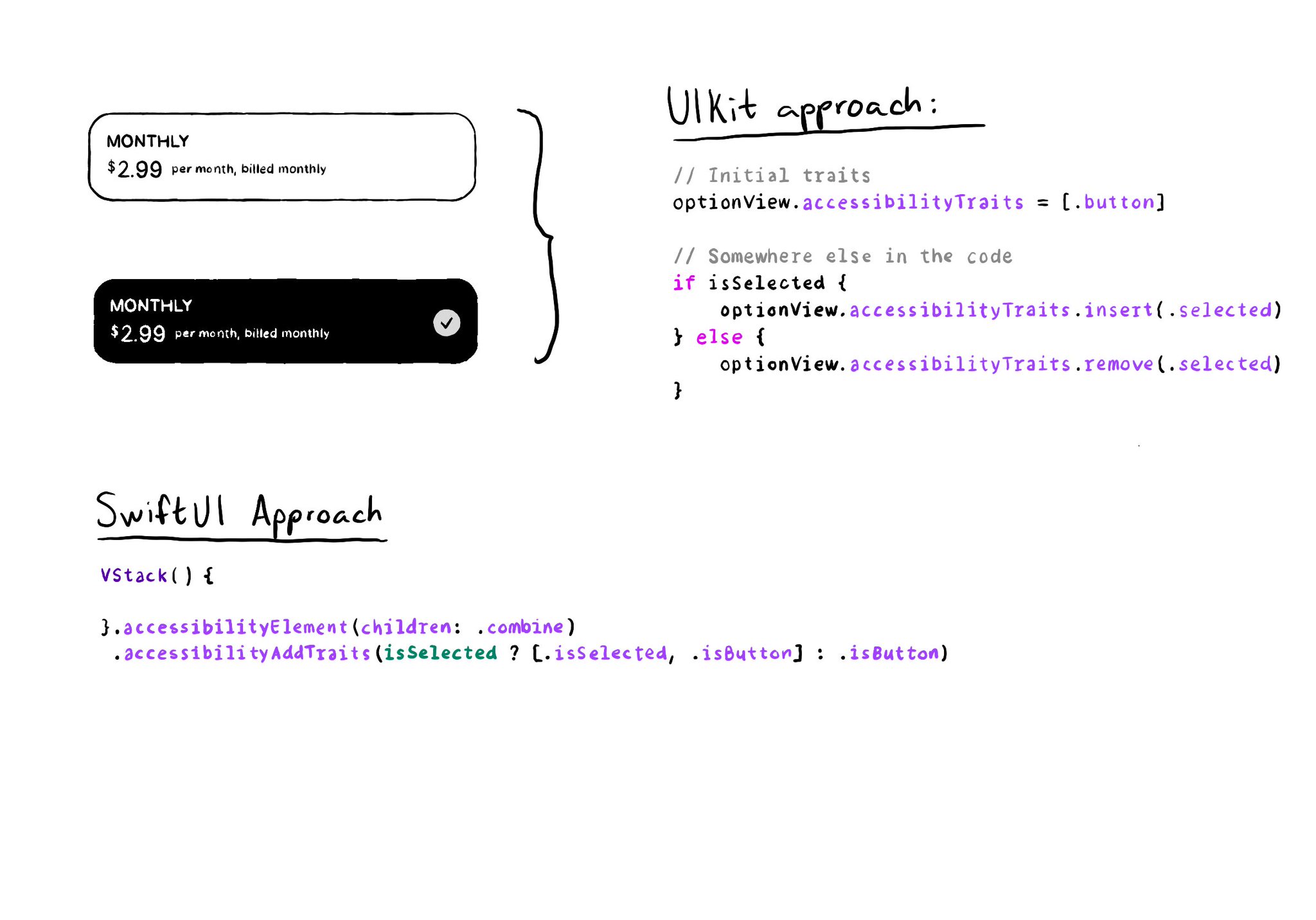 As with UIKit, in SwiftUI you can also add/remove a11y traits. But because of its declarative nature, you'll have to approach it in a slightly different way. A little nuance, but something that made me scratch my UIKit head when learning SwitUI.