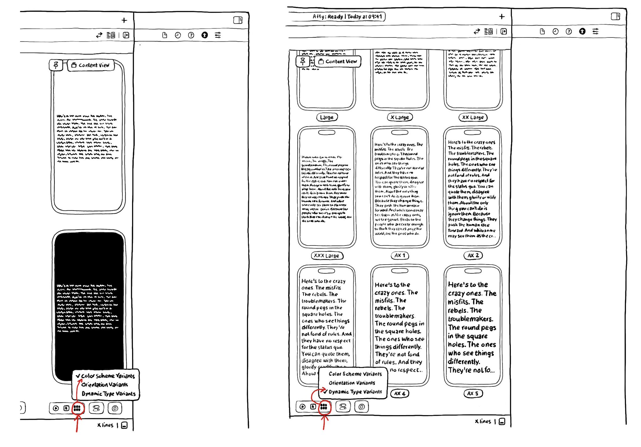 There are a ton of things to love about SwiftUI. But one of my favorites it's got to be the possibility of previewing Variants: the possibility of seeing your UI in dark/light modes, all dynamic type sizes, and orientations, side-by-side.