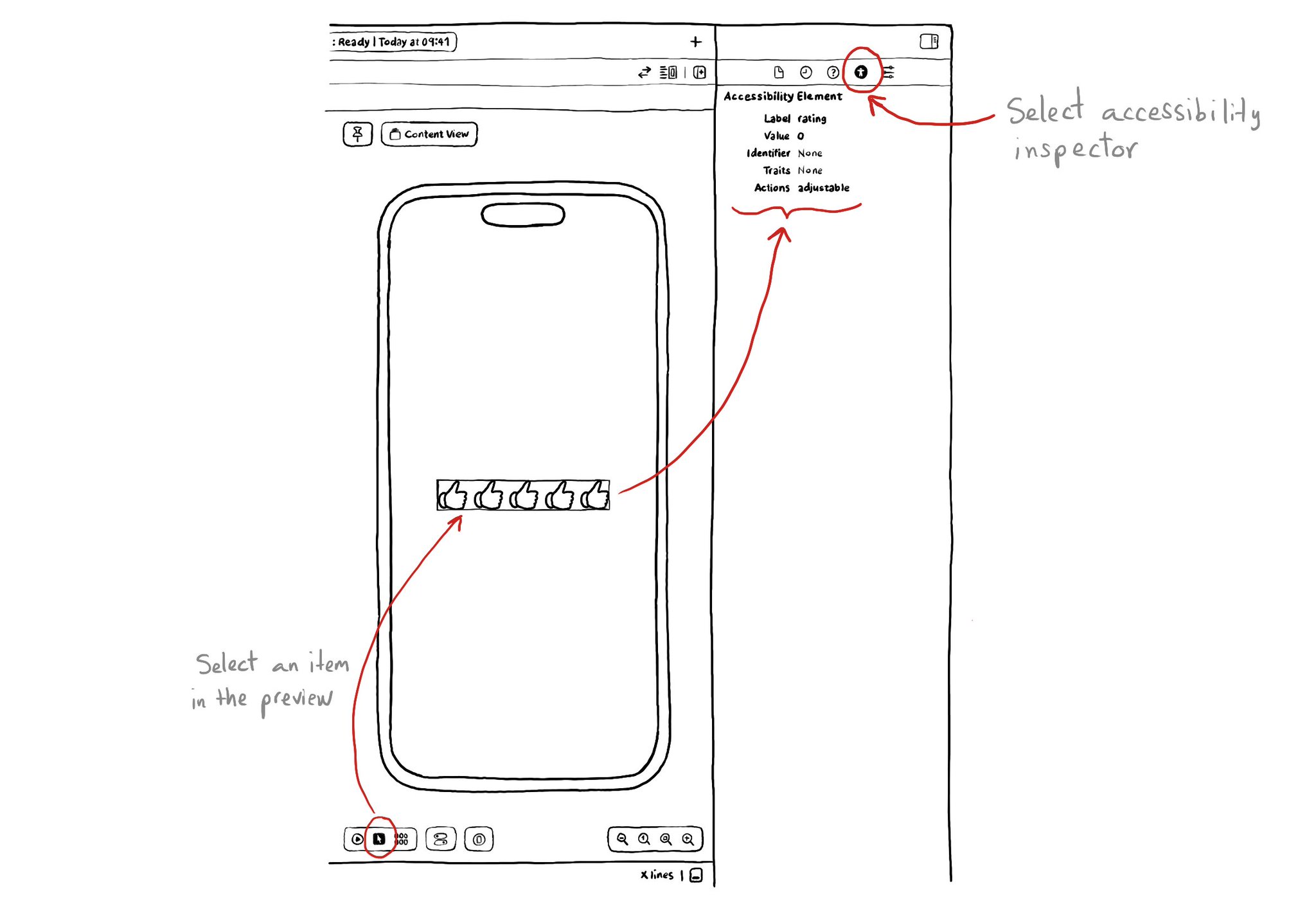 If you are using SwiftUI to build your apps, there is a fairly basic but very useful Accessibility Inspector built right there in the Inspectors Panel, on the right side of Xcode.