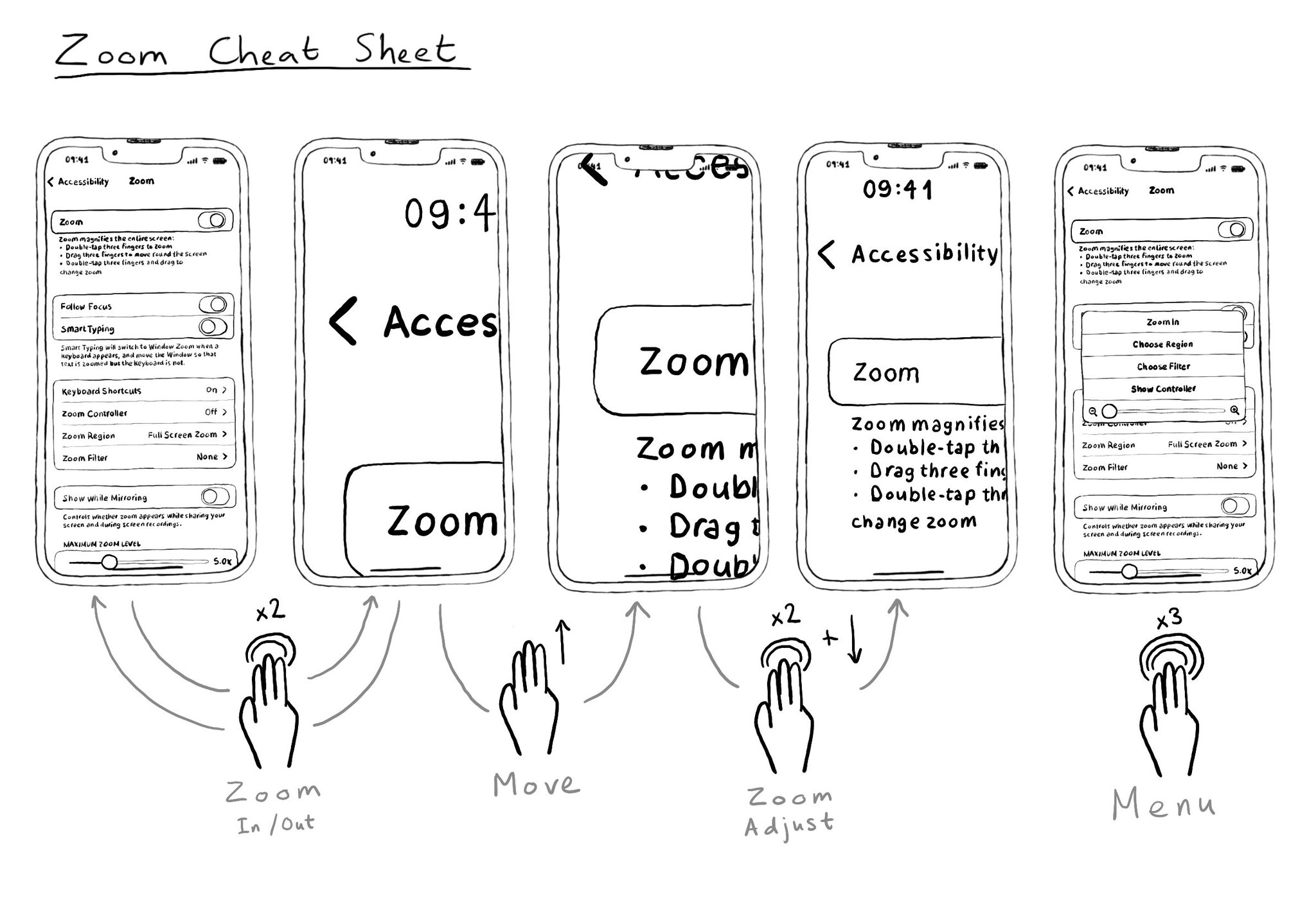 Zoom lets the user magnify the screen if the user needs to zoom in a region to be able to see any details a bit closer. It is useful to know the gestures that let you zoom in, back out, move around the screen, adjust zoom level or show its menu.