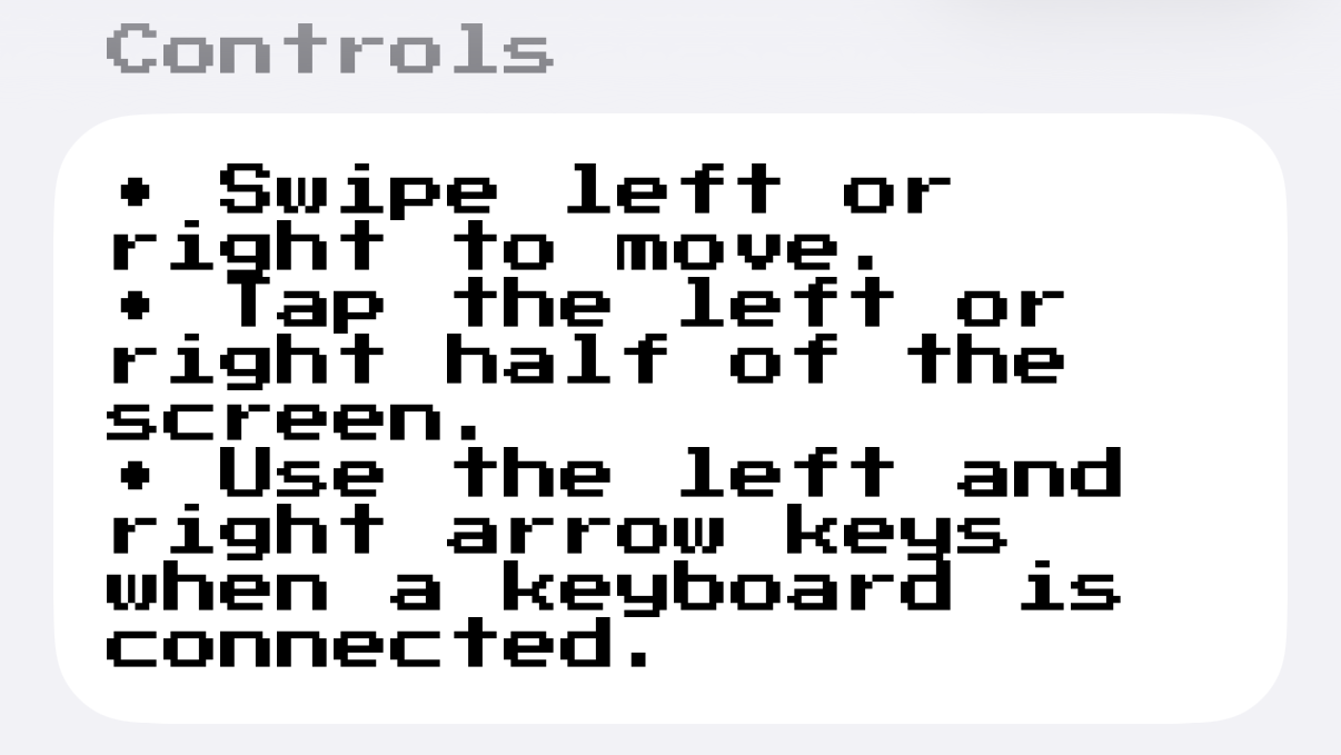 Control the game your way with the Digital Crown, taps, swipes, or keyboard. Game controller support is coming soon. You can also tune settings such as font choice and sound effects volume.